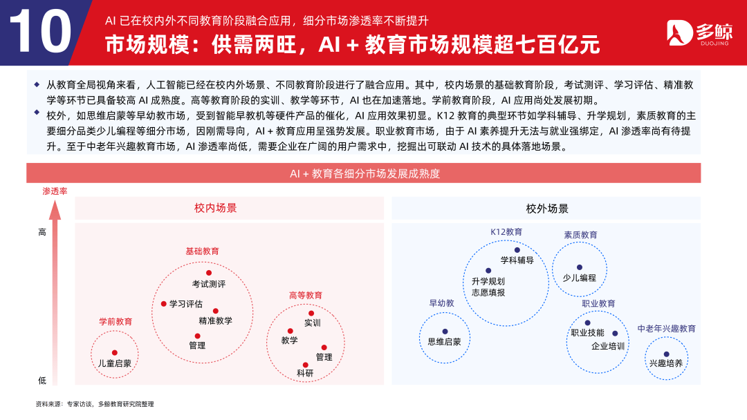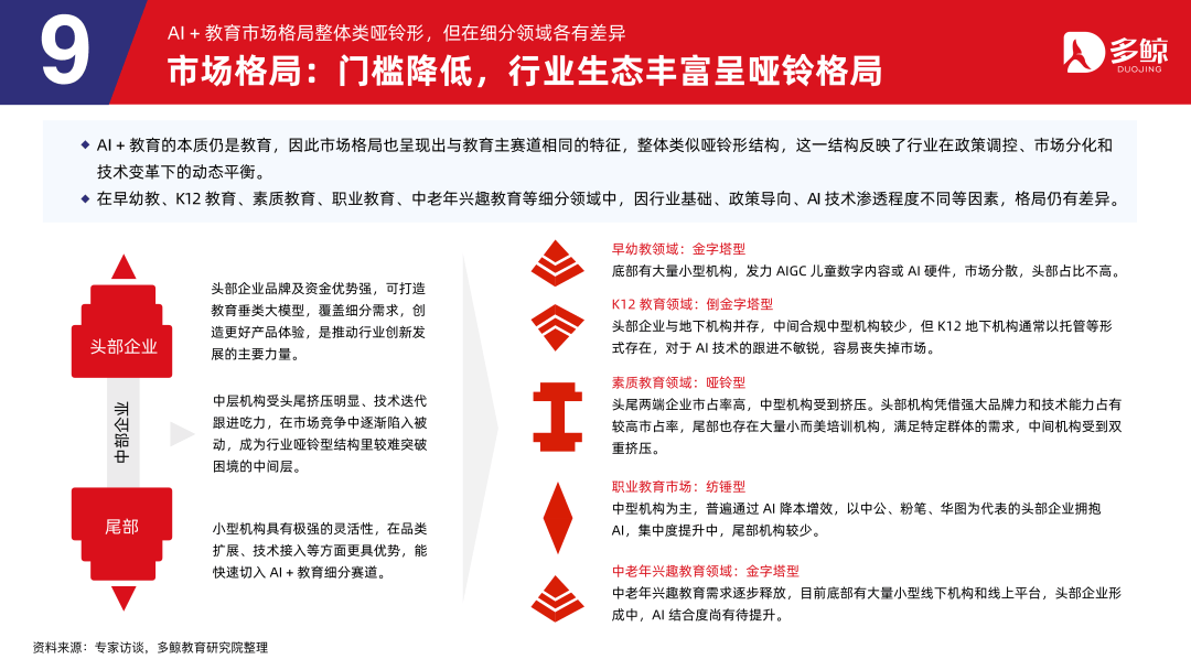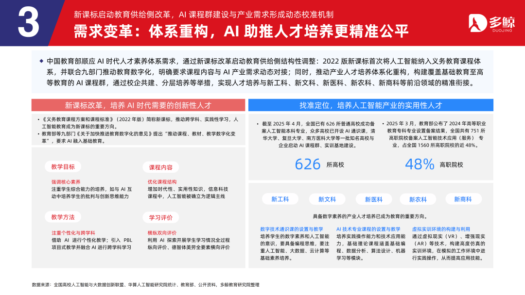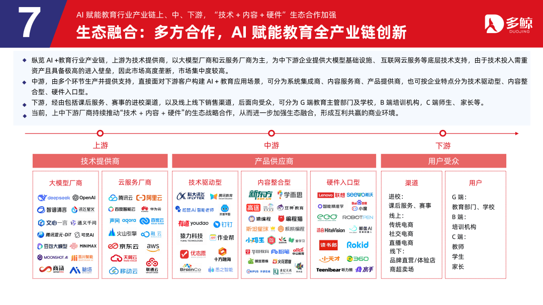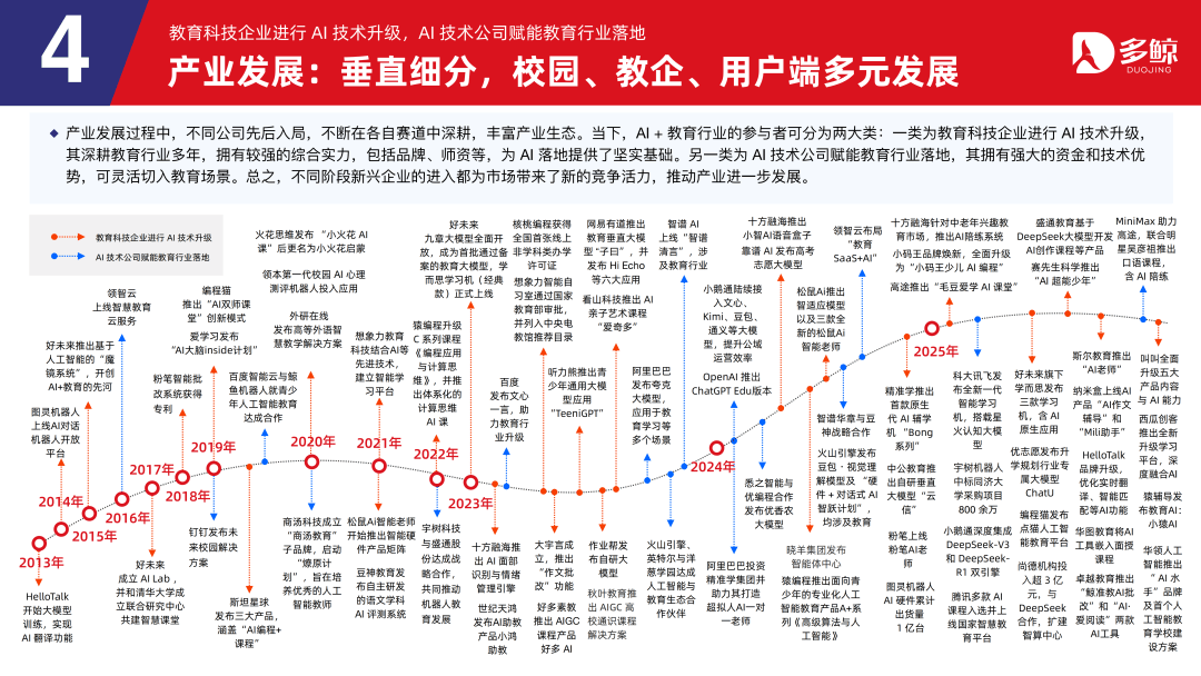 三者正在客户、产物、盈利等维度各有侧沉,鞭策财产人才培育系统化沉构,深度解析政策、市场、手艺取行业款式,受政策影响,多鲸教育研究院出品《2025 AI 赋能教育行业成长趋向演讲》更新版,就细分赛道市场规模而言。