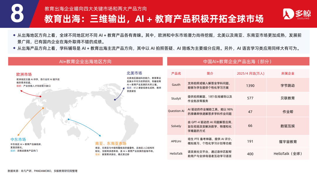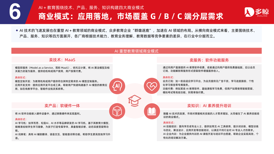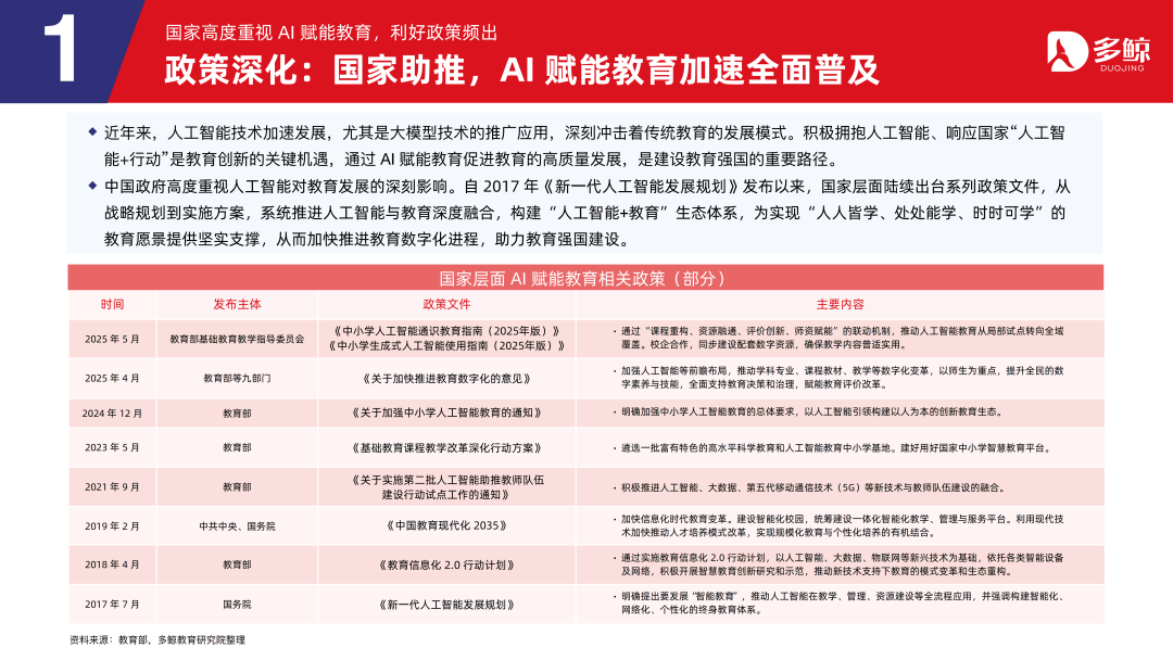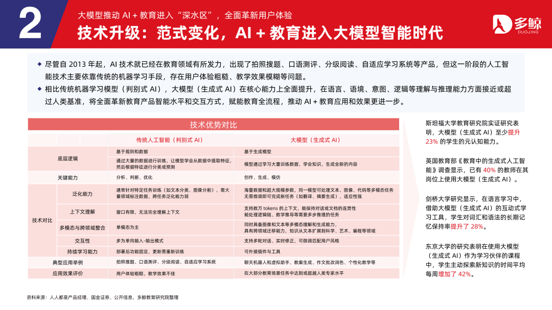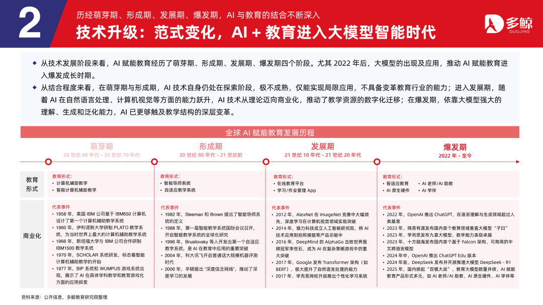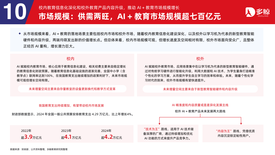 三者正在客户、产物、盈利等维度各有侧沉,鞭策财产人才培育系统化沉构,深度解析政策、市场、手艺取行业款式,受政策影响,多鲸教育研究院出品《2025 AI 赋能教育行业成长趋向演讲》更新版,就细分赛道市场规模而言。