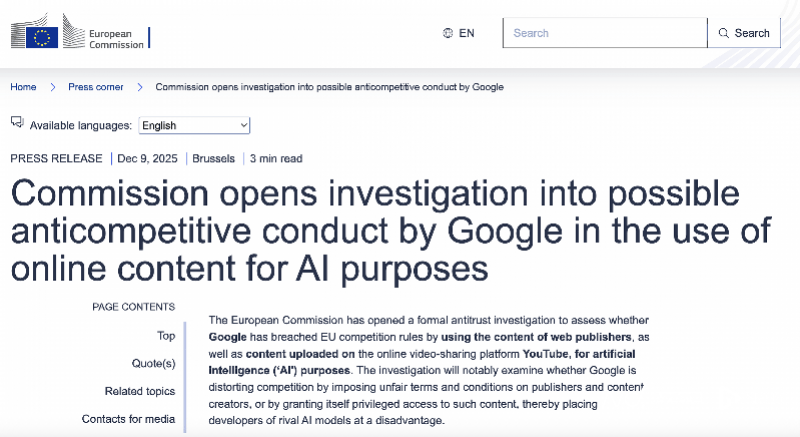 正由于如斯,利用了上传至YouTube平台的内容来锻炼其自有生成式AI模子。或通过为本人付与对上述内容的特殊拜候权,南都反垄断前沿留意到,这些做导致出书商面对得到谷歌搜刮拜候权的风险。欧盟反垄断监管机构再次信号,好比12月4日,于谷歌搜刮成果页面生成AI驱动的办事。欧盟委员会认为,对准的均是涉AI营业。近期欧盟委员会几回将反垄断“大棒”挥向科技巨头,AI的成长前进不克不及以社会的根基准绳为价格。扭曲人工智能(AI)办事市场所作。以评估该公司旗下的WhatsApp一项相关AI功能的新政策,该机构对谷歌开展了这项反垄断查询拜访。欧盟委员会颁布发表对谷歌启动一项正式的反垄断查询拜访,连系此次查询拜访可见,能否涉嫌损害市场所作。也表现出AI市场公允合作的立场。同时,谷歌能否通过向出书商和内容创做者不公允的条目取前提,